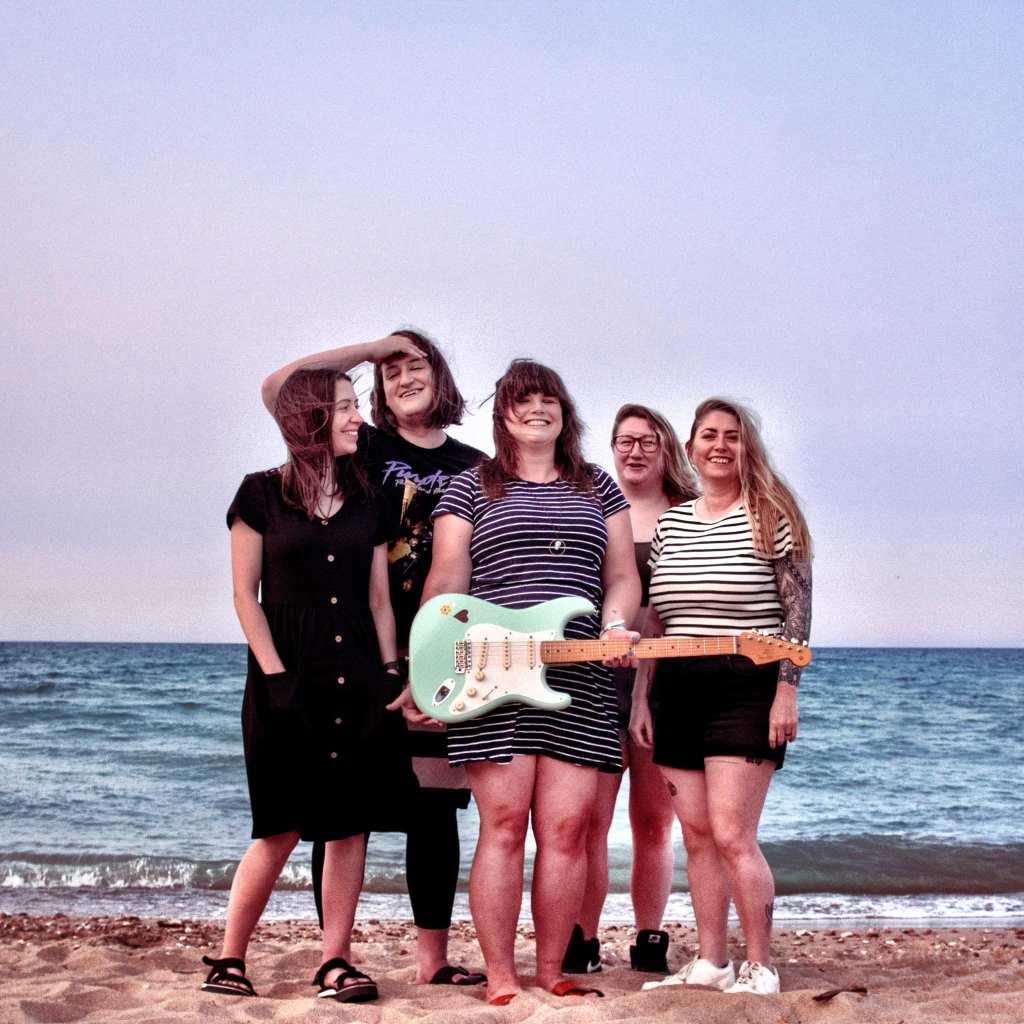 Danielle Sines leads the band. She sings, shouts, plays guitar and synth, and records noises on tape recorders. She likes melodies that remind her of summertime leading them to create their album “Sorry in the Summer”.